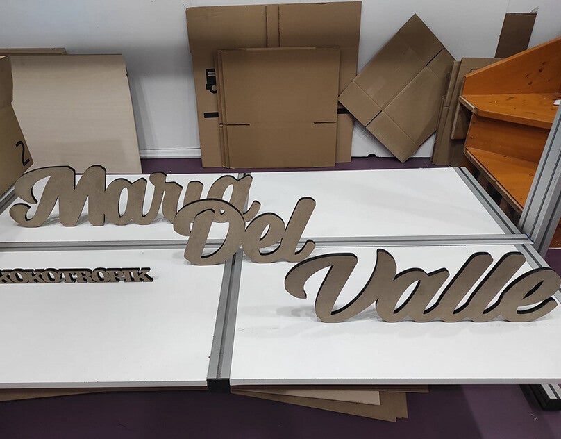 Antes de cortar y grabar, siempre hacemos una maqueta y enseñamos al cliente el como quedaría su producto diseñado, en este caso madera MDF.